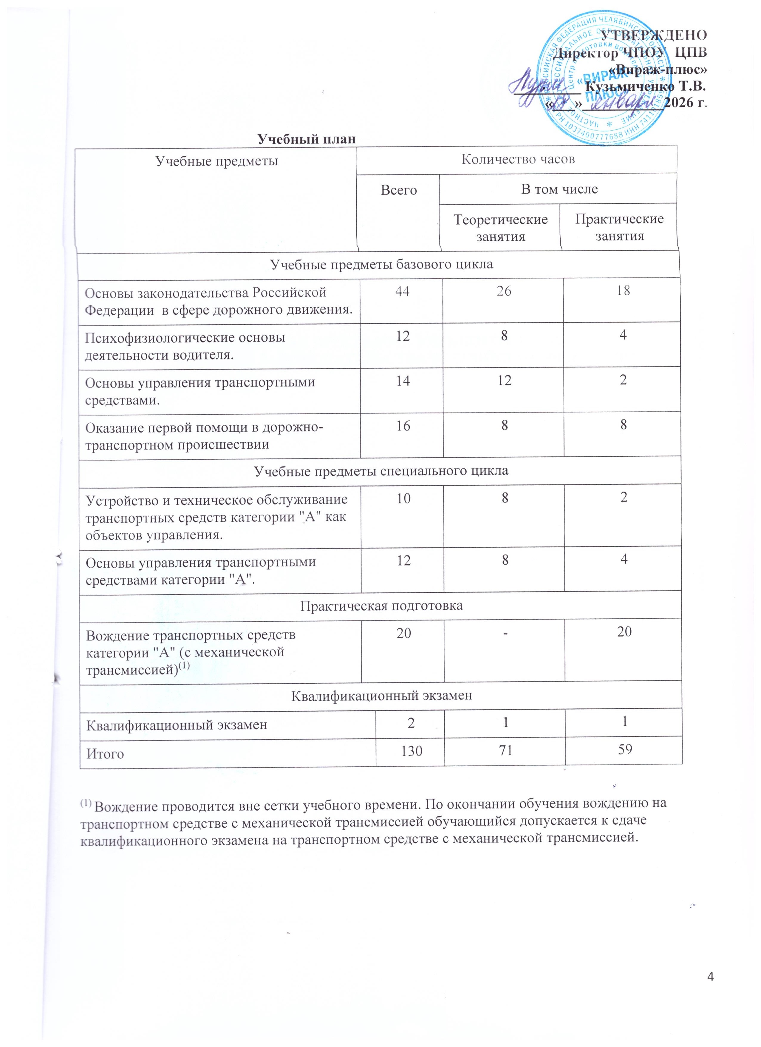 Численность обучающихся по реализуемой образовательной программе профессиональной подготовки водителей транспортных средств категории «А» с механической трансмиссией по договорам об образовании за счет средств физических и (или) юридических лиц составляет 59 человек.