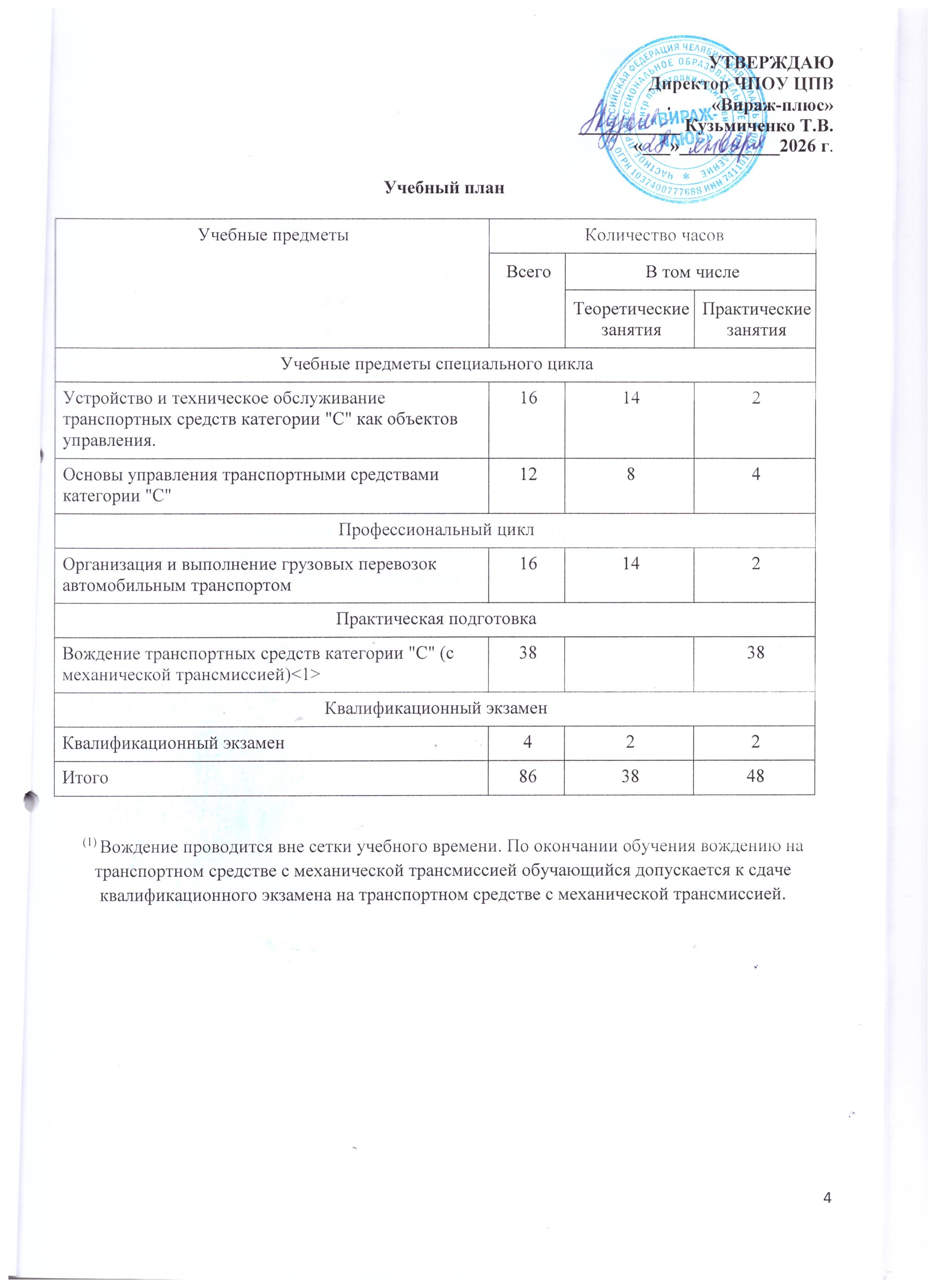 - Программой переподготовки водителей транспортных средств с категории «В» подкатегори "В1" на категорию «С», согласованной с Госавтоинспекцией и утвержденной директором Автошколы;