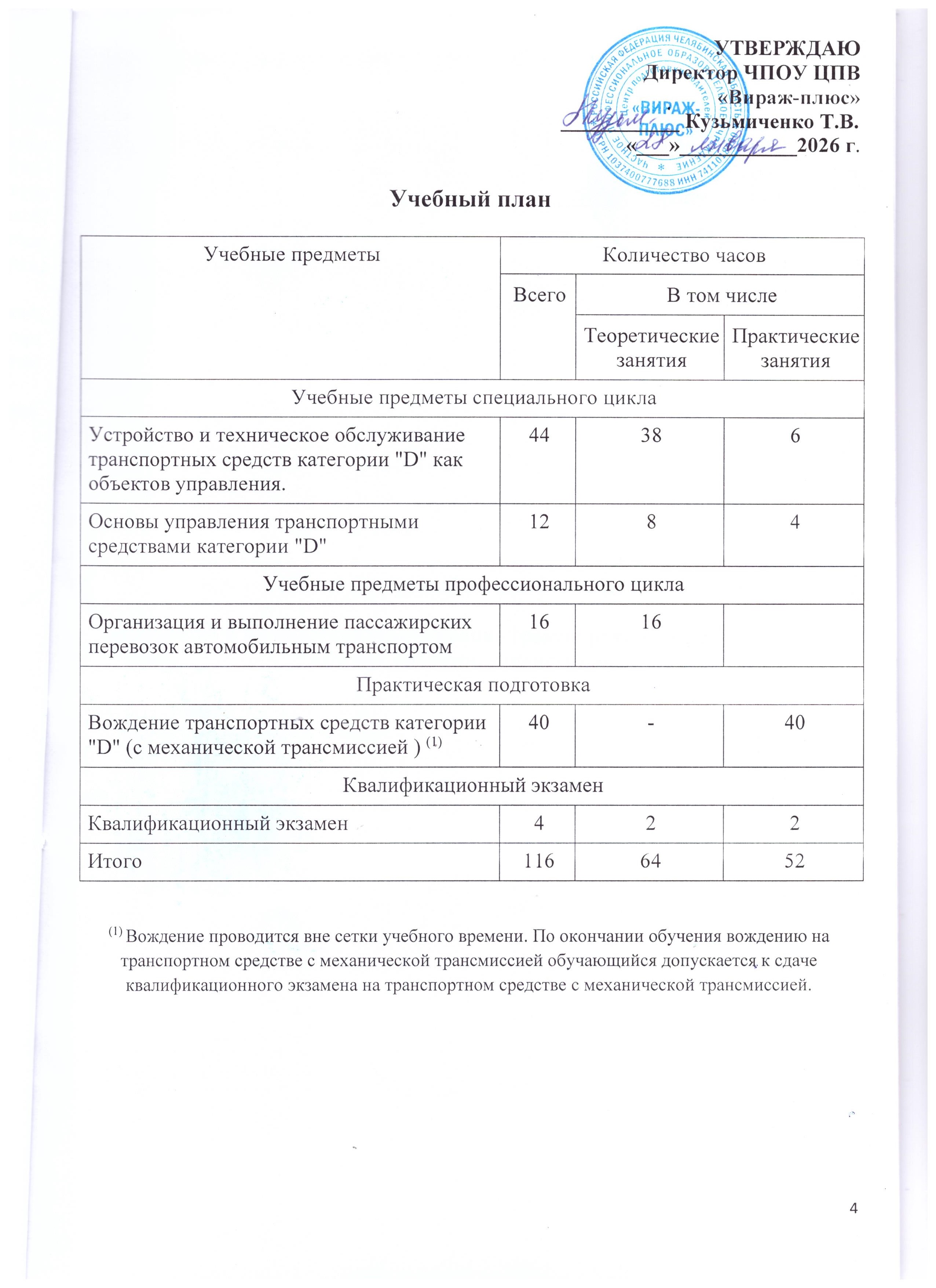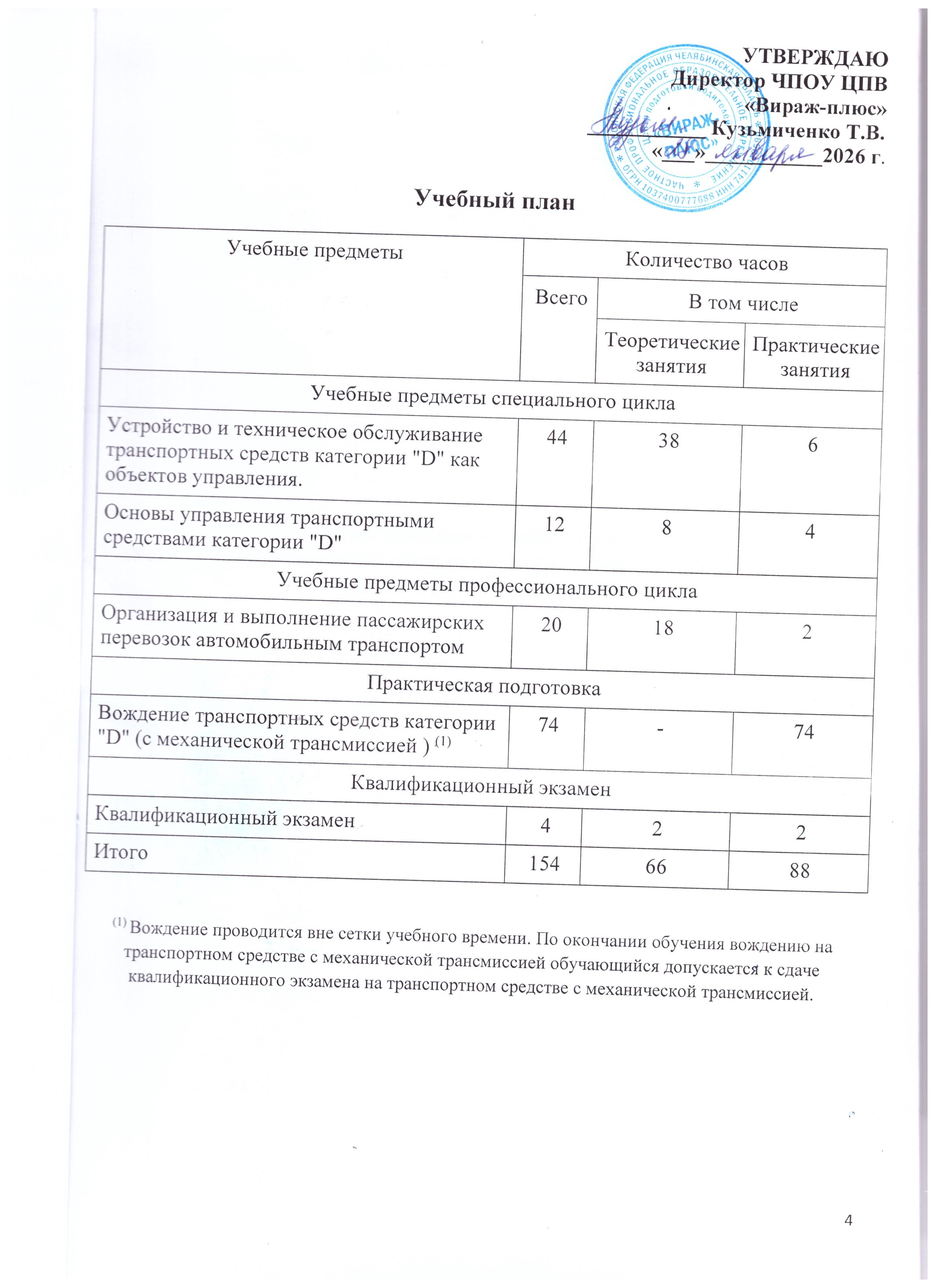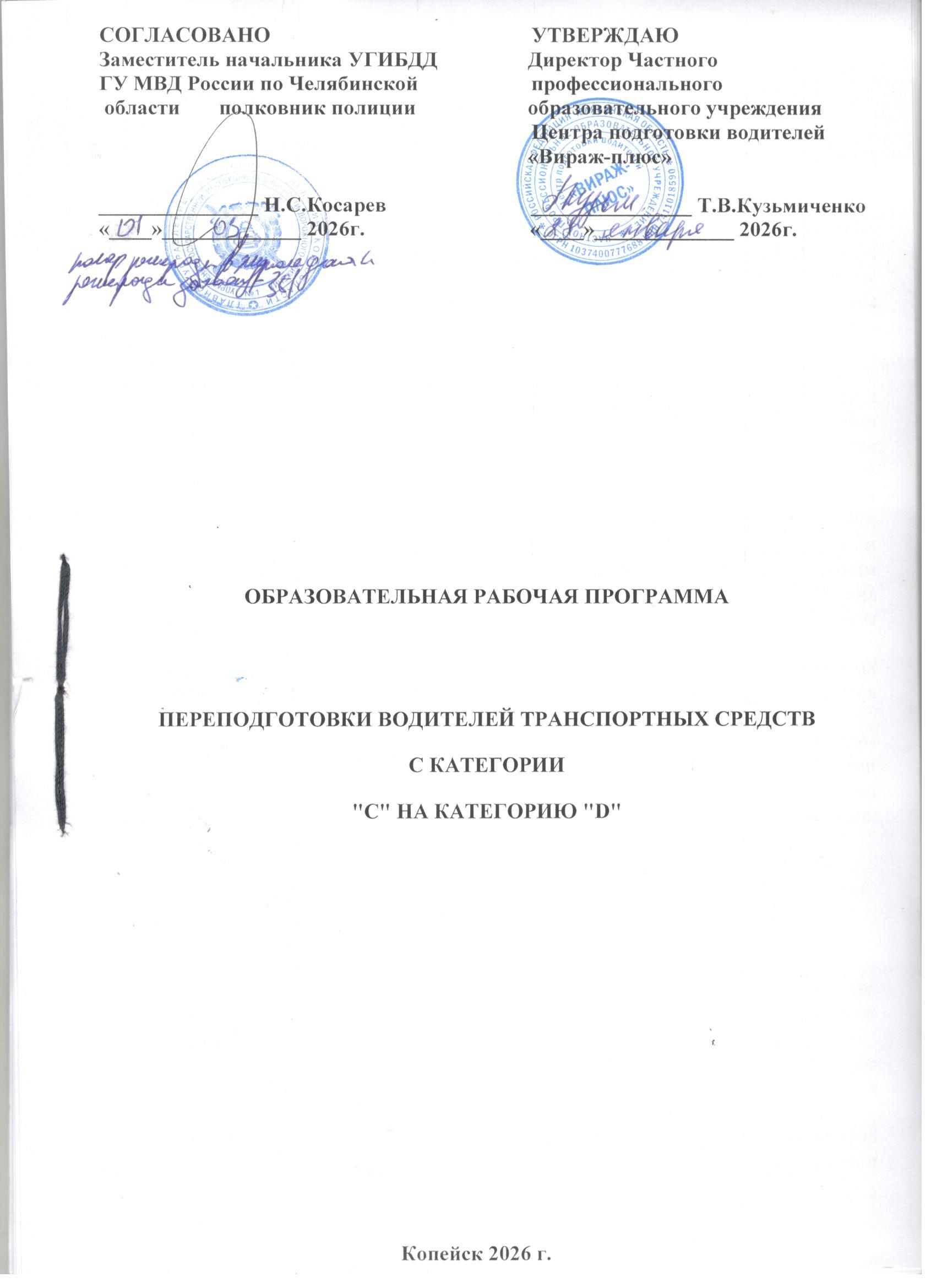 - Программой переподготовки водителей транспортных средств с категории «В» на категорию «D», согласованной с Госавтоинспекцией и утвержденной директором Автошколы;