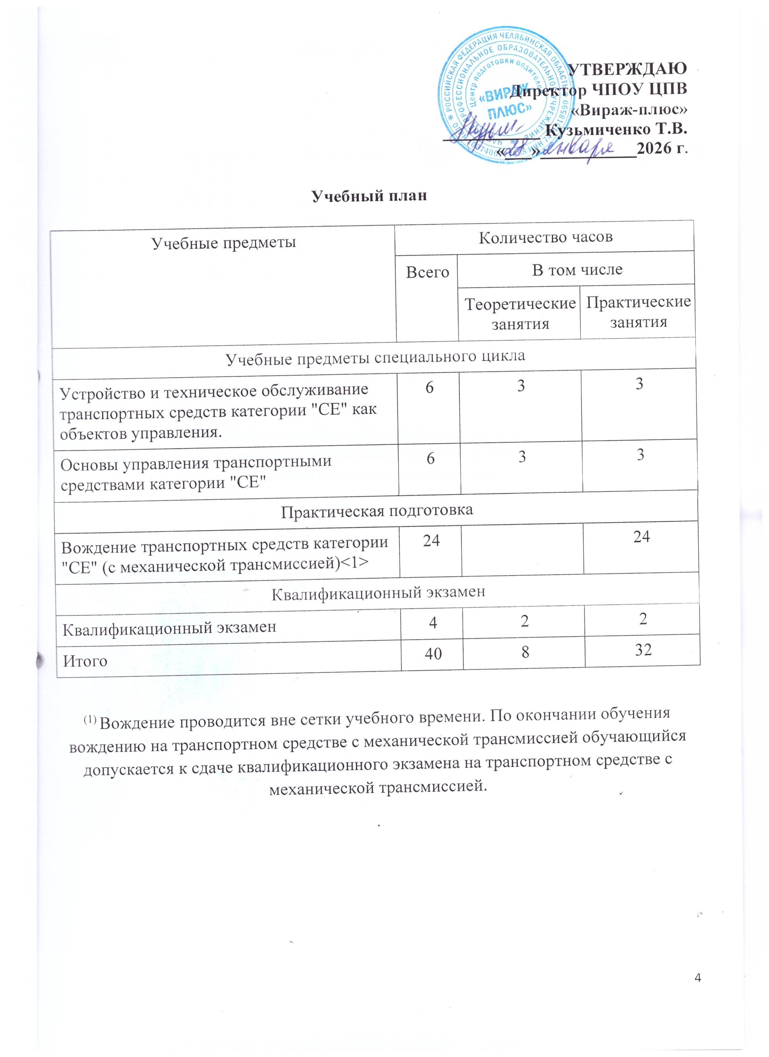 - По образовательной программе профессиональной подготовки водителей транспортных средств категории "СЕ" с механической трансмиссией составляет 40 человек в год.